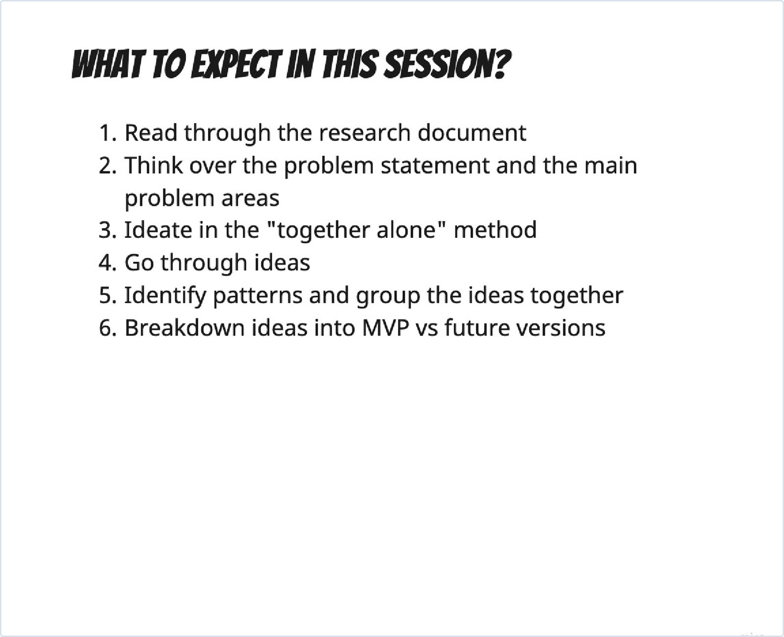 Read through the research document (15 mins)